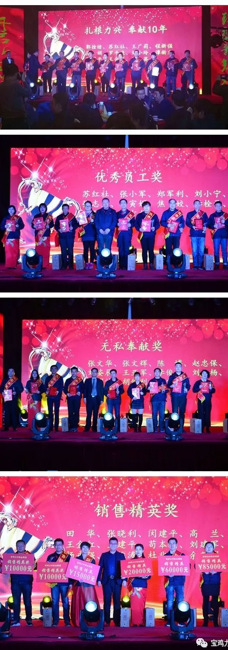 寶雞力興鈦業(yè)集團(tuán)從1993年創(chuàng)建至今已經(jīng)走過了25個(gè)春秋,鑄就了中國鈦谷骨干企業(yè)的品牌地位。公司已與中航工業(yè)集團(tuán)、中國兵器工業(yè)集團(tuán)、中核工業(yè)集團(tuán)、中國航天科技集團(tuán)、中國航天科工集團(tuán)等多個(gè)大型軍工集團(tuán)建立了長期合作關(guān)系;與西部礦業(yè)、三一重工、東江環(huán)保等多家上市公司成為了戰(zhàn)略伙伴,實(shí)現(xiàn)了合作共贏。這些業(yè)績凝聚了我們所有公司員工的心血和汗水,飽含著許許多多扎根力興,愛崗敬業(yè),無私奉獻(xiàn)的好員工辛勤付出,會(huì)上集團(tuán)領(lǐng)導(dǎo)對(duì)2018年度先進(jìn)個(gè)人和集體頒發(fā)了獎(jiǎng)牌、榮譽(yù)證書和獎(jiǎng)金。
